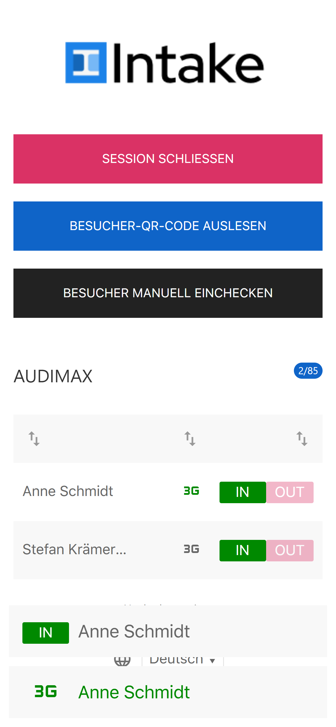 - Kontaktlose Erfassung der Kontaktdaten und Überprüfung des 3G-/2G-Status - auch bei sehr großen Veranstaltungen